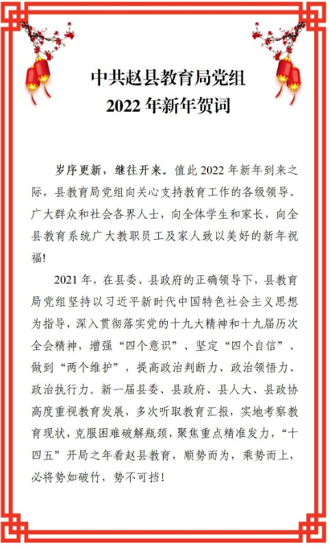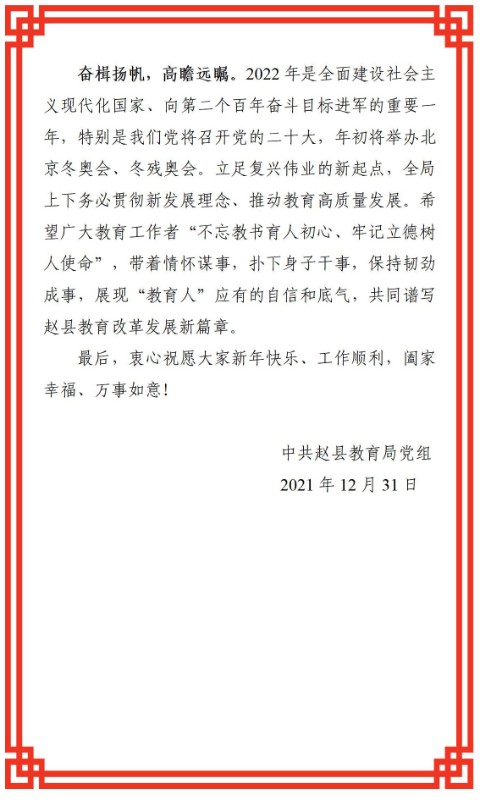 发布时间: 2021-12-31 10:55 发布单位: 赵县教育局 浏览量: 29 【公开】
