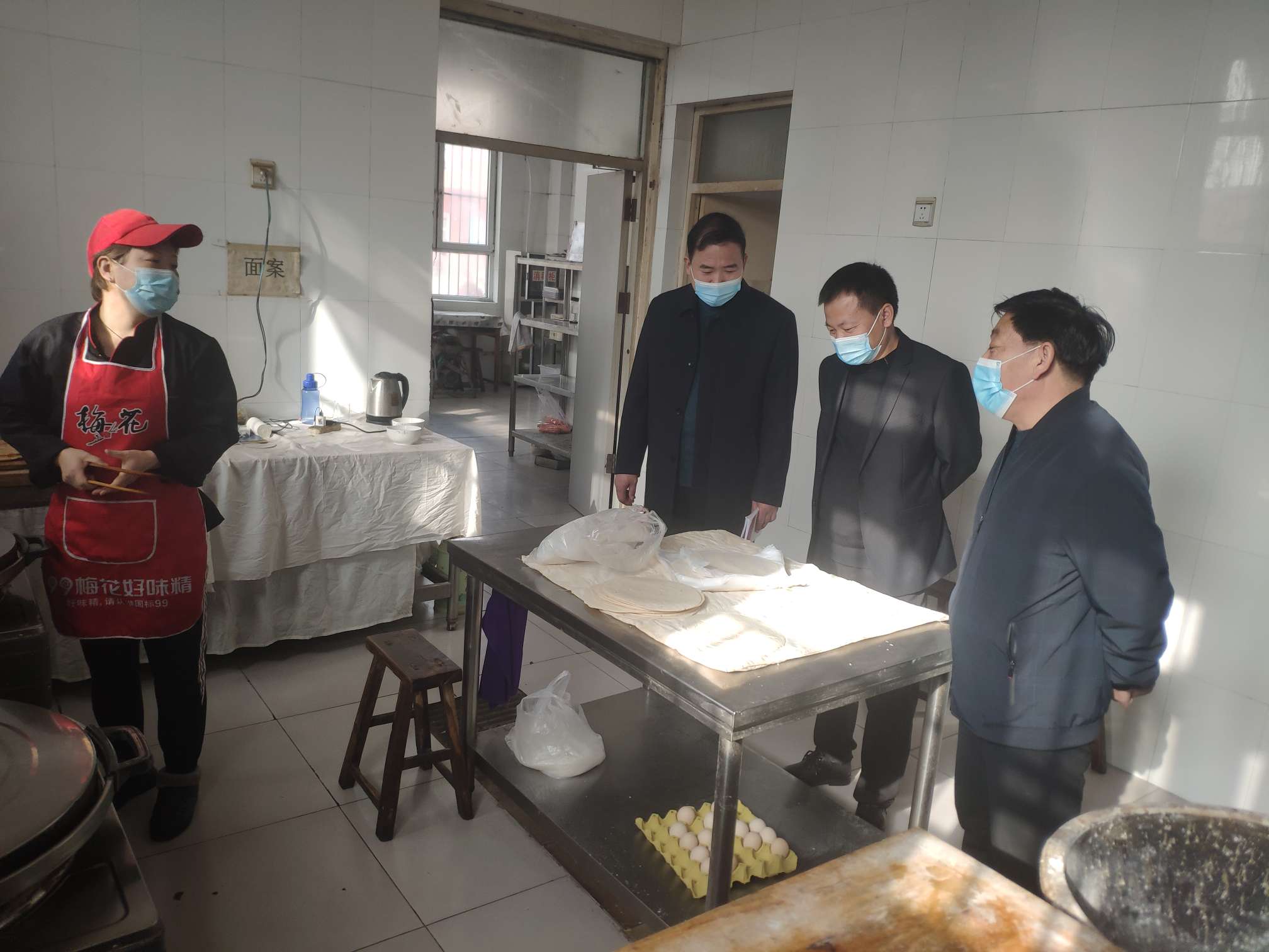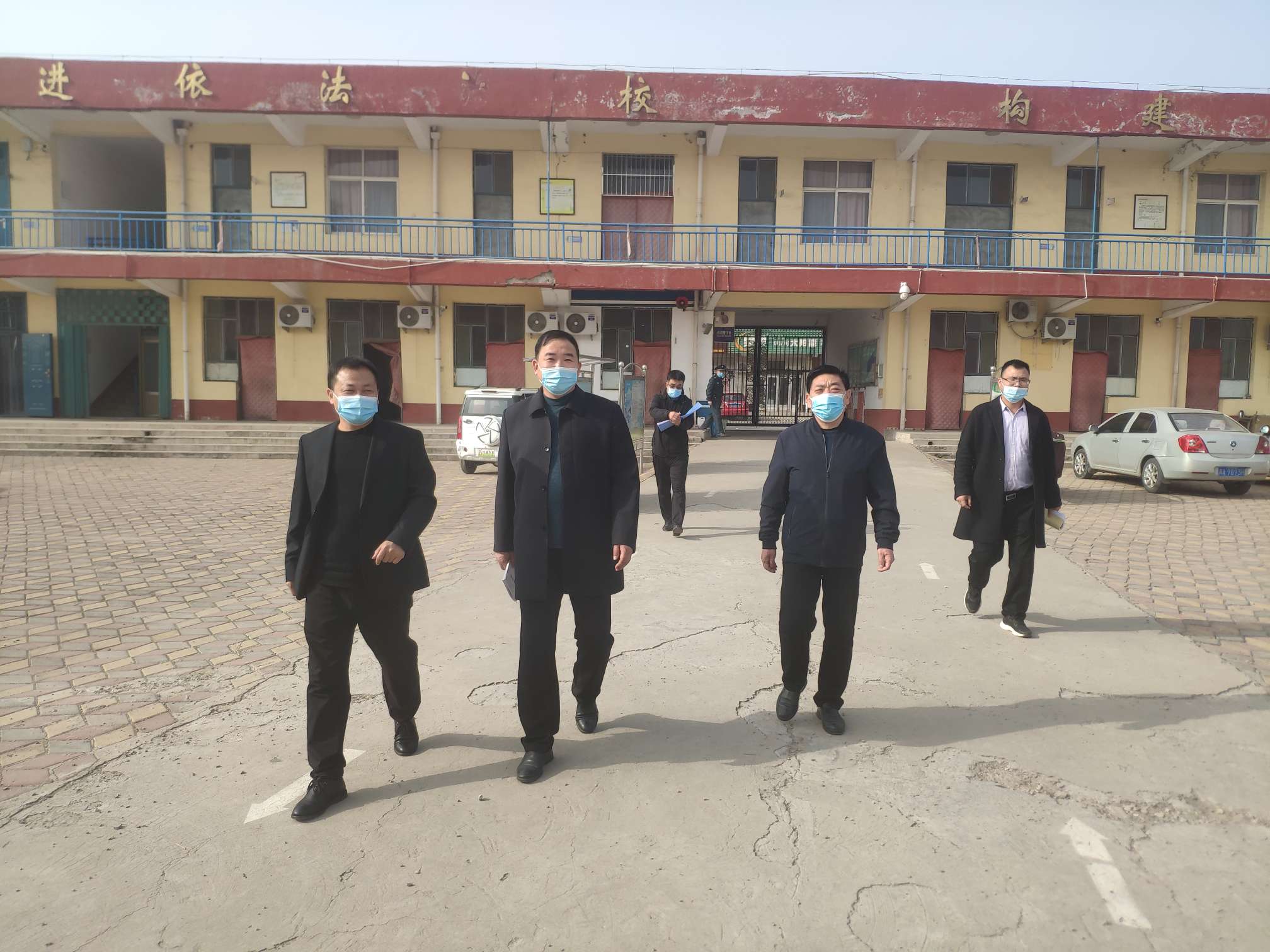 3月15日,教育局许局长和县纪检驻教育局检查组温书记到新寨店学校、赵县七中检查疫情防控和食品安全工作